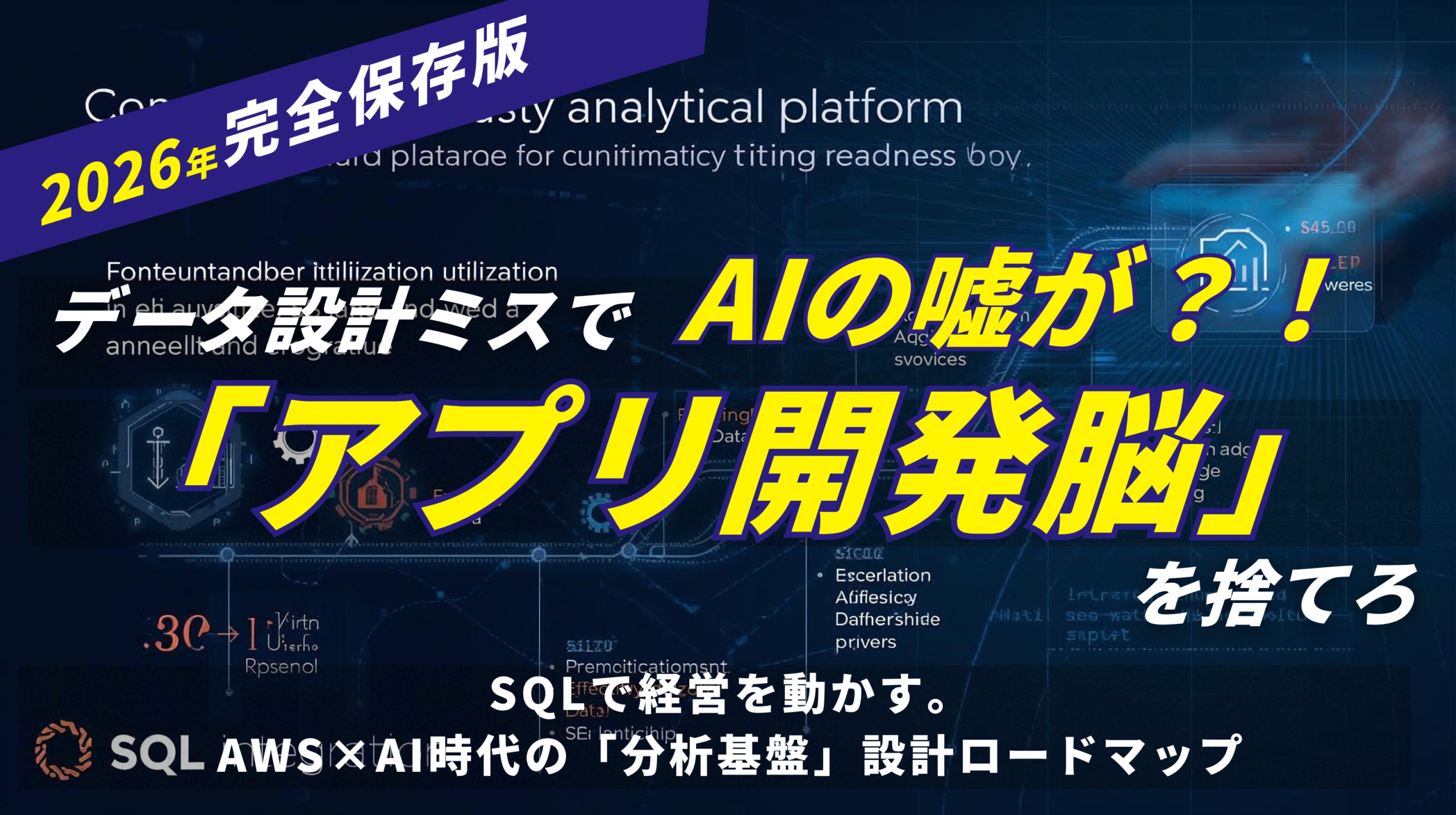 本記事では、アプリエンジニアが陥りがちな「DB設計の罠」を解き明かし、AWS (S3/Athena) を使った低コストなデータレイク構築から、そのデータをAI (LLM) に食わせて業務を自動化するまでの、具体的なアーキテクチャ設計論を解説する。